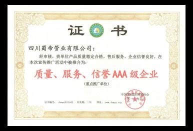 質量、服務、信譽AAA級企業證書