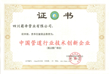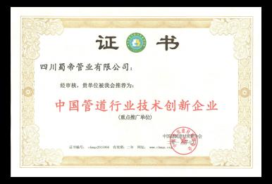 中國管道行業技術創新企業證書