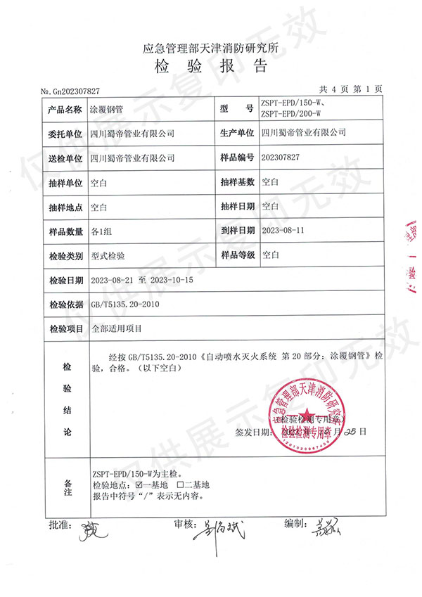 涂塑鋼管檢測報告